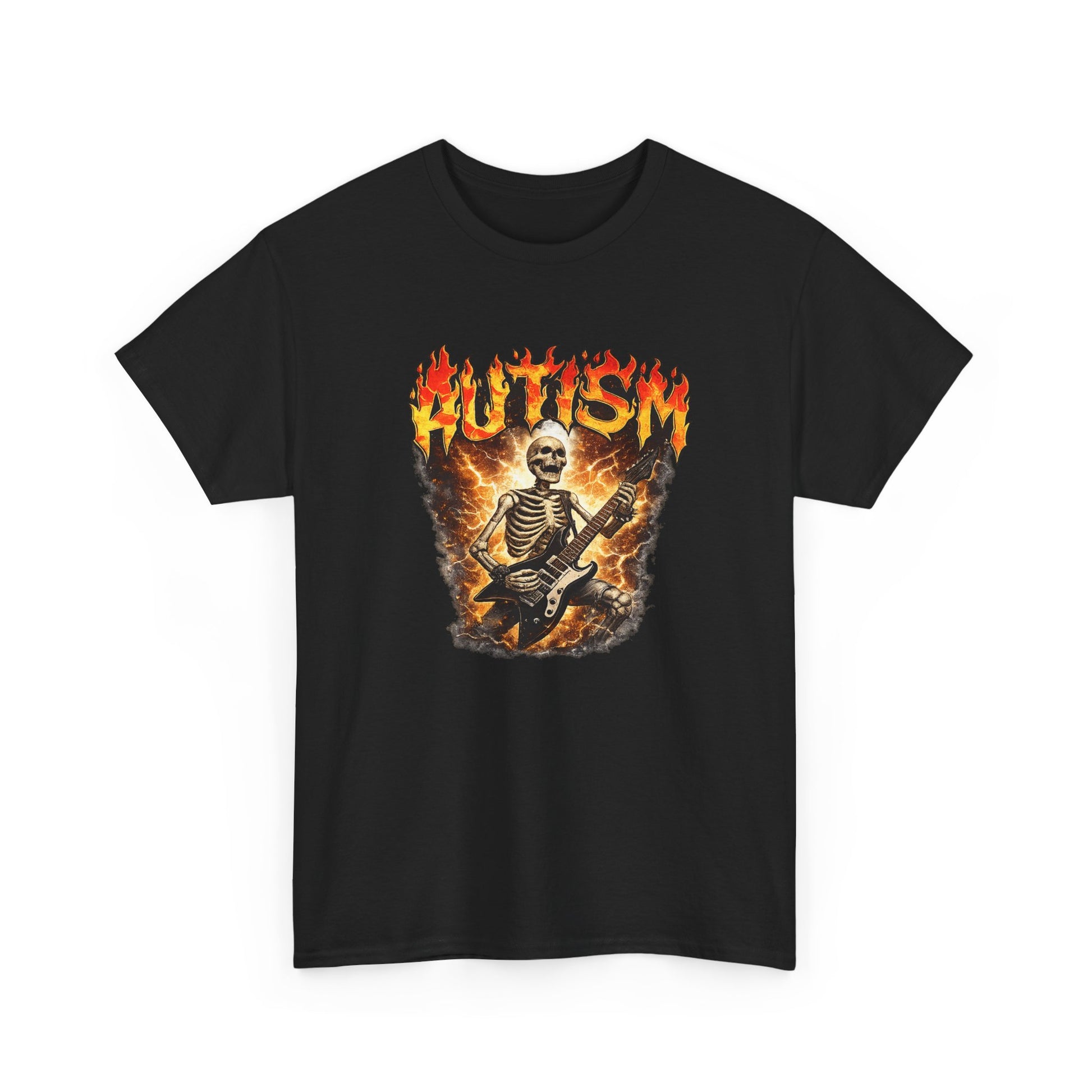 This design features AUTISM blazing in full metal flames, backed by raw energy and a skeleton shredding an electric guitar like the world is ending and the solo still isn’t finished. Loud, unapologetic, and a little unhinged, it’s built for anyone who lives outside the lines and refuses to turn it down.